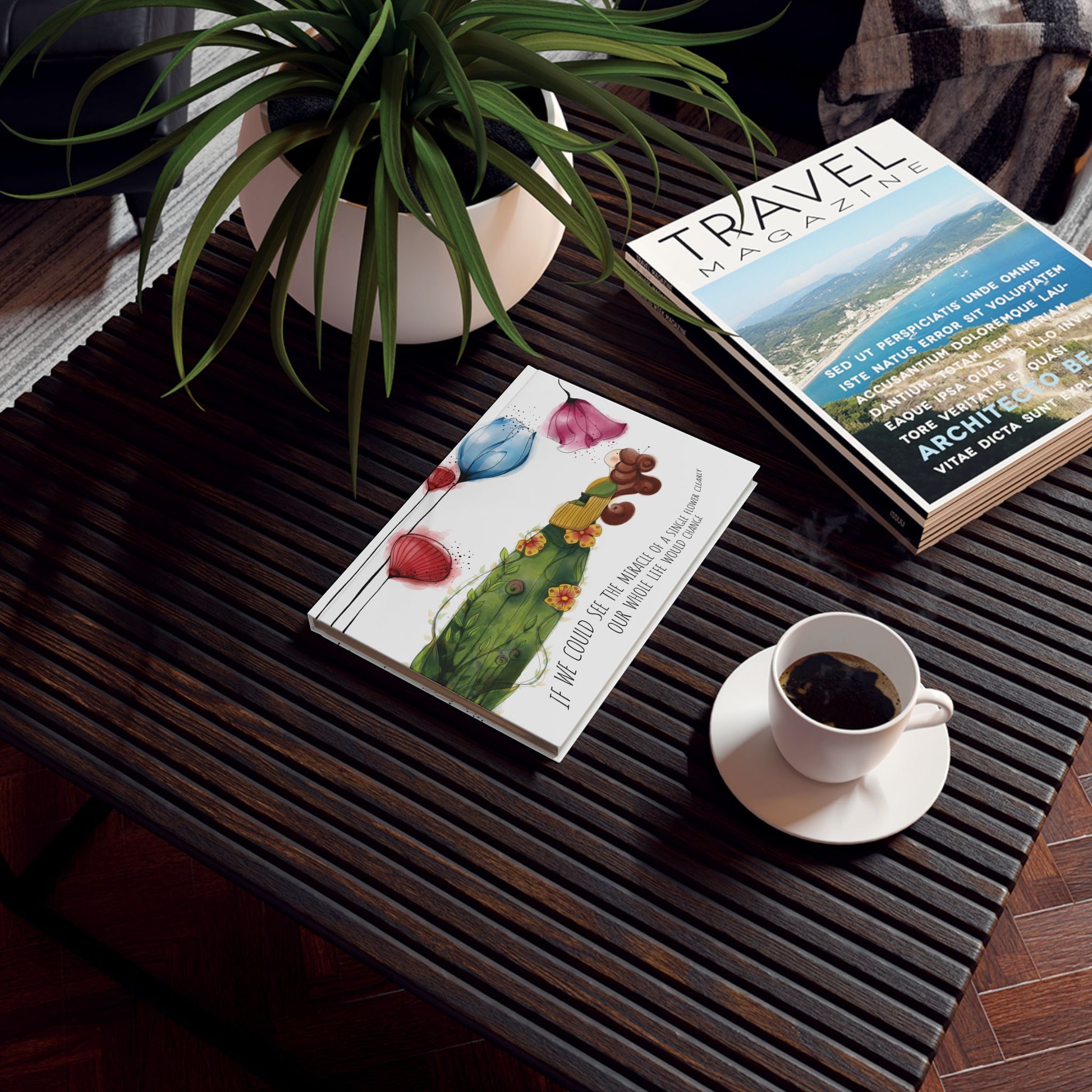 Soft white pages and a matte, full-wrap cover that feels like a quiet morning in the garden. This compact hardback journal holds 128 pages and lies flat when open, so thoughts and sketches flow without interruption. Watercolor blooms drift across the cover—tall poppies and dangling petals in blush, sapphire, and coral—paired with gentle, playful text that reads like a private note. It’s the sort of notebook you pull from your bag between errands to jot a sudden idea, plan a small project, or scribble a line of gratitude. Choose ruled, graph, or blank interior pages to match your habit: lists, diagrams, or freehand sketches. The durable matte lamination keeps the art vibrant while resisting everyday wear, and the single, portable size tucks easily into purses and backpacks.
