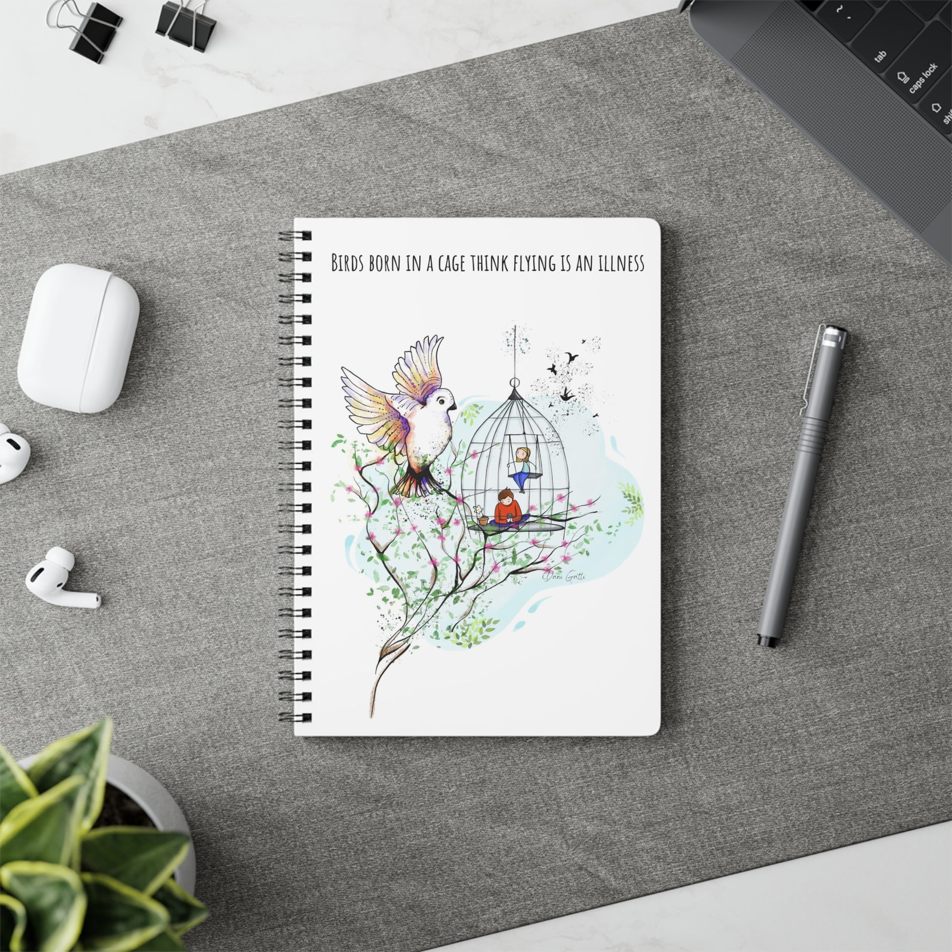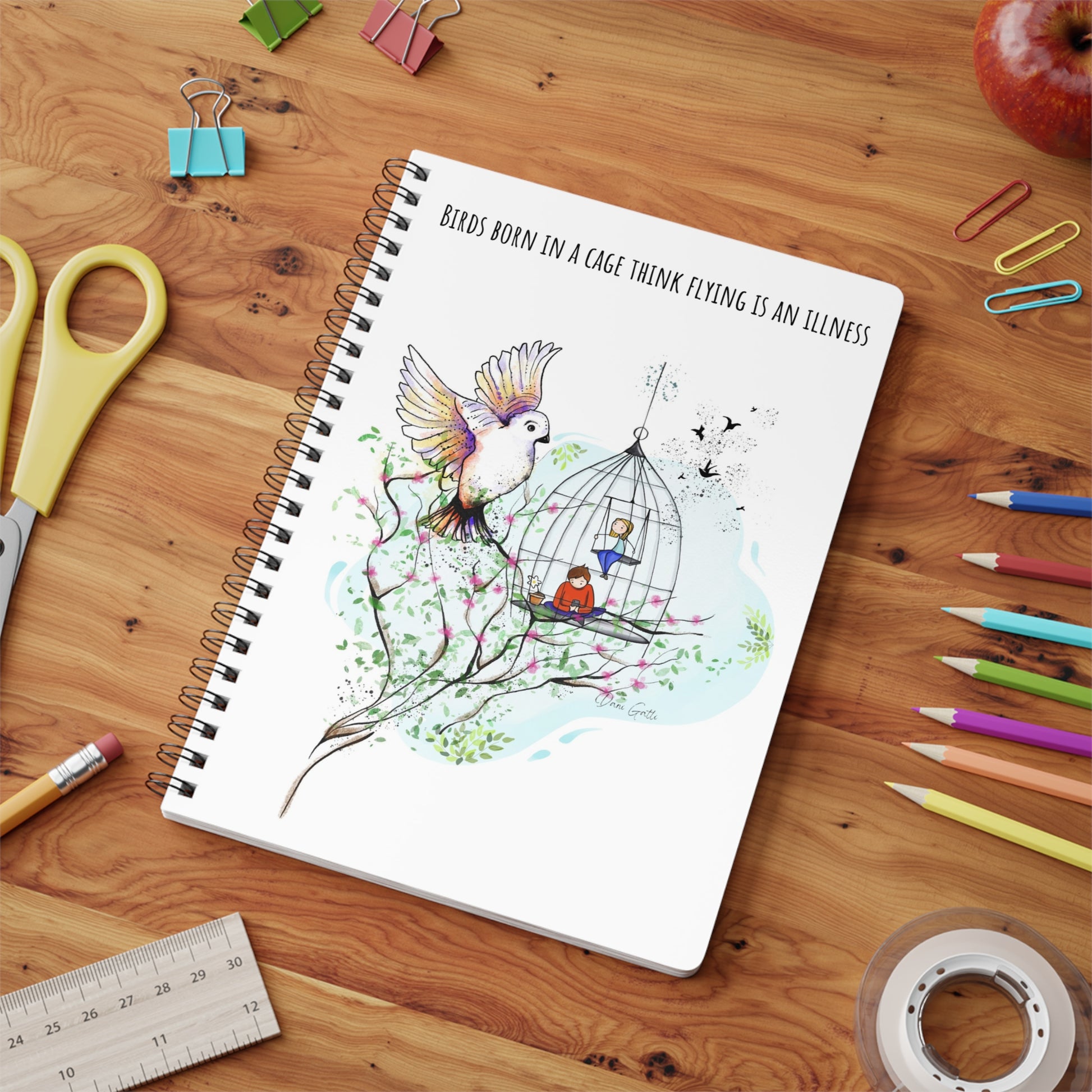 For those that love journaling, for students of any age, this wire-bound softcover notebook hits all the marks. Made with gloss-laminated 280gsm paper covers for a luxurious feel, the notebook features 90gsm lined papers with 150 pages total for all note-taking purposes. Each notebook comes with black wire binding in A5 size, while your design is printed on the front cover.